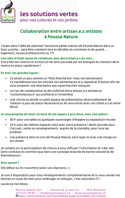 - une présence dans le coin de Pousse Nature, sans loyer et avec une marge sur les ventes