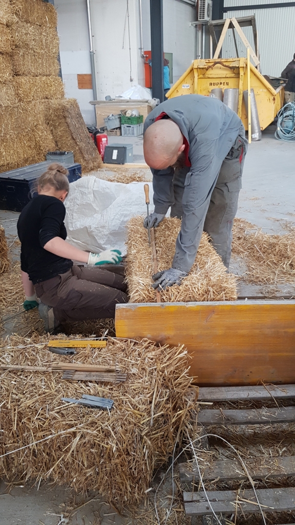 4. 08.01.18 dès 11h environ : remplissage des bottes de paille lors du montage du plancher sur sous-sol, 10 personnes